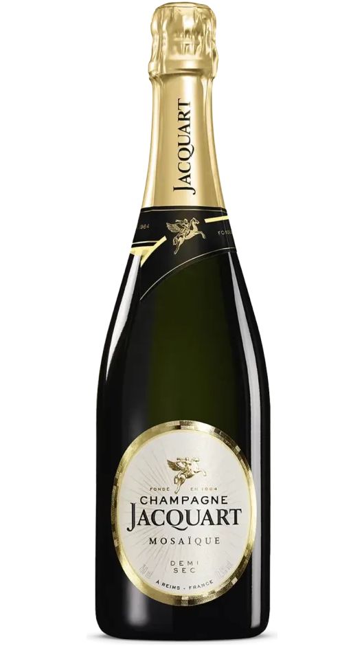 Champagne Mosaïque Demi Sec - Jacquart is born in the heart of the renowned Champagne region in France, and it is a perfect balance between sweetness and freshness. It is a skillfully crafted blend, mainly based on Pinot Noir, Pinot Meunier, and Chardonnay, which give the wine structure, elegance, and aromatic finesse. The classic fermentation method and extended aging on the lees give this demi sec a vibrant complexity and a creamy, persistent sparkle.