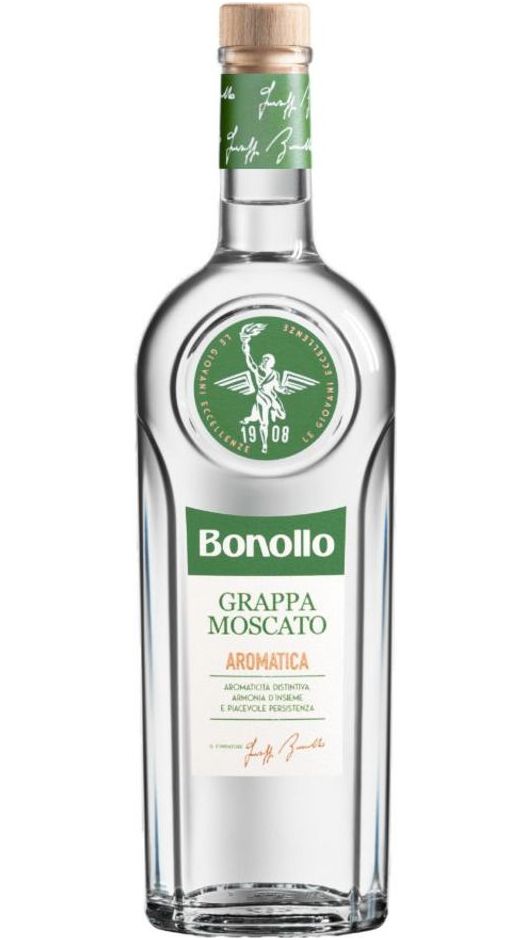 La Grappa di Moscato di Bonollo è un'eccellenza italiana, espressione della tradizione distillatoria veneta. Ottenuta dalle vinacce del pregiato vitigno Moscato, questa grappa si distingue per le sue caratteristiche aromatiche ricche e complesse. Al naso si percepiscono note floreali e fruttate, con sfumature che ricordano la rosa, il glicine e la pesca matura. Questi sentori donano una piacevole freschezza che prepara il palato a un assaggio altrettanto intrigante.