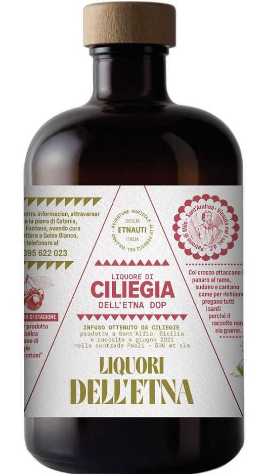 Le Liquore Ciliegia dell’Etna Dop naît sur les fertiles pentes du volcan Etna, un terroir unique où le sol volcanique confère aux fruits un caractère inimitable. Ce liqueur met en valeur les cerises autochtones cultivées dans cette région renommée, des fruits qui développent une douceur naturelle équilibrée par de légères notes acidulées.