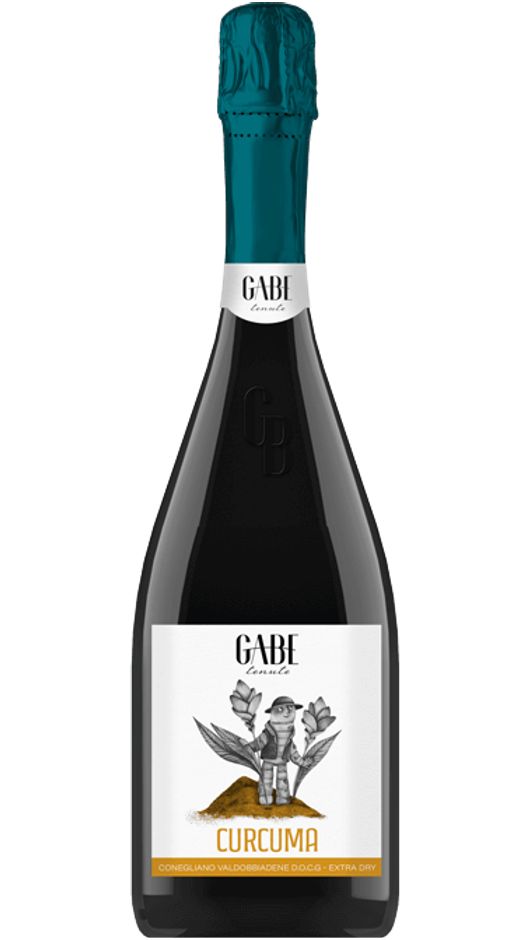 Prosecco Valdobbiadene DOC Extra Dry - Curcuma - Gabe è un'imperdibile interpretazione del famoso spumante italiano, proveniente dalle colline del Conegliano Valdobbiadene, territorio eletto alla produzione di Prosecco. Questo vino è ottenuto da uve Glera, coltivate con cura e nel rispetto delle tradizioni secolari della viticoltura locale. Si distingue per il suo perlage fine e persistente, che evidenzia l'attenzione rivolta alla qualità durante tutto il processo produttivo.
