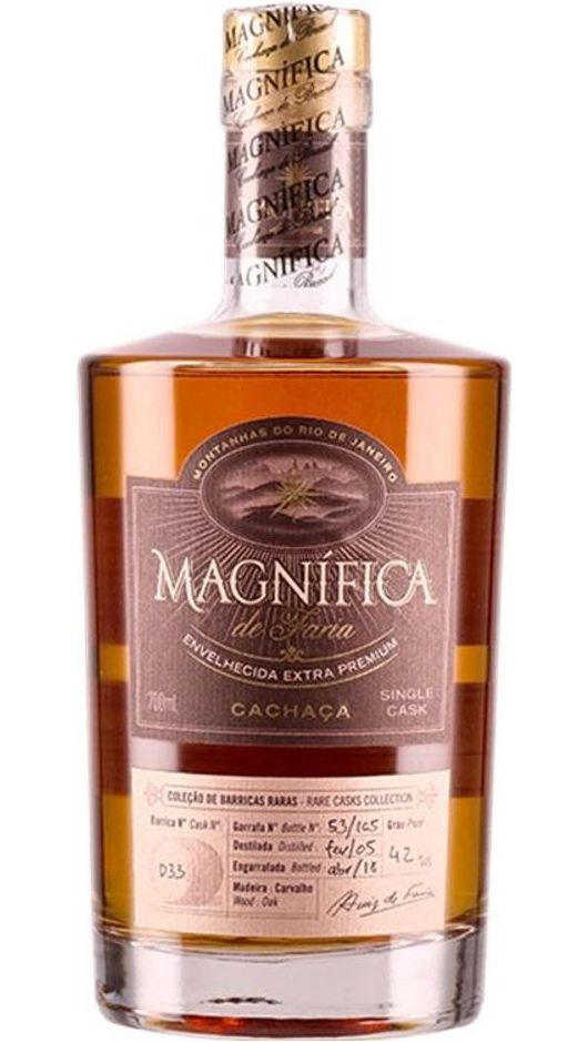 Al naso emerge un profilo aromatico ricco e invitante, che si esprime con tocchi di frutta secca e miele, mentre al palato è morbida, equilibrata e persistente, con una piacevole armonia tra dolcezza e freschezza. Ideale come distillato da meditazione, si abbina egregiamente a dolci a base di cioccolato o tabacchi pregiati, regalando un’esperienza sensoriale intensa e memorabile. Un vero gioiello della tradizione brasiliana, racchiuso in un'elegante confezione astucciata.