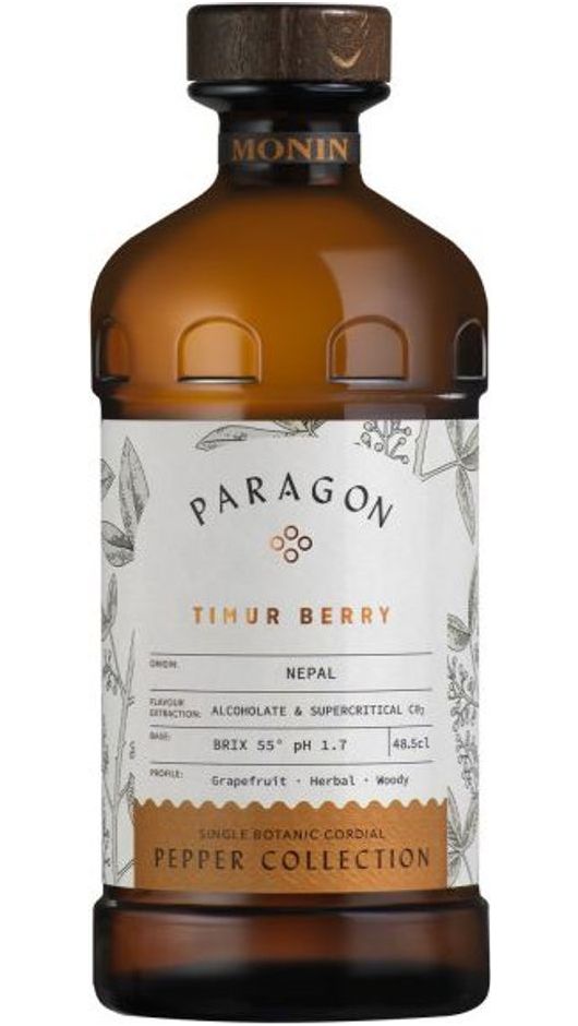 Il Cordial Timur Berry di Paragon, prodotto da Monin, è un liquore artigianale che cattura l’essenza dei frutti di bosco Timur, coltivati in territori selezionati per la loro qualità e biodiversità. Questa bevanda si distingue per il suo equilibrio tra dolcezza e acidità, grazie a un’attenta selezione del frutto e a un procedimento di infusione che preserva i profumi intensi e freschi della bacche. Il risultato è un cordial dal colore rosso rubino brillante, con sentori di mora, ribes e una leggera nota speziata che richiama il pepe Timur.