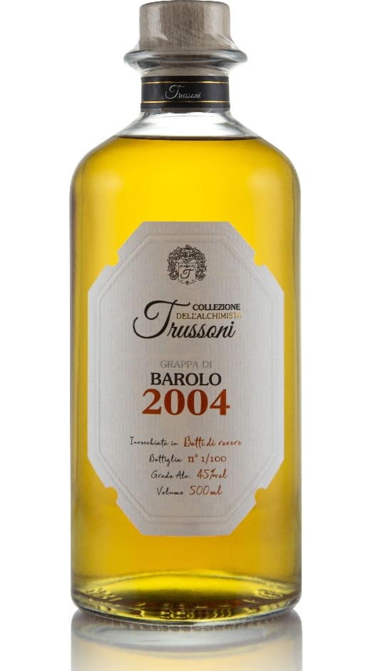La Grappa Barolo 2004 della Distilleria Trussoni nasce da vinacce selezionate provenienti dai vigneti di Barolo, cuore pulsante delle Langhe in Piemonte. Questo distillato, ottenuto esclusivamente da vinacce di Nebbiolo, riflette l’eleganza e la complessità del territorio, con un carattere strutturato e avvolgente. L’invecchiamento di oltre quindici anni conferisce alla grappa una tonalità ambrata intensa e un bouquet ricco di sentori caldi di vaniglia, spezie delicate e lievi note balsamiche, sposate a una piacevole morbidezza al palato.