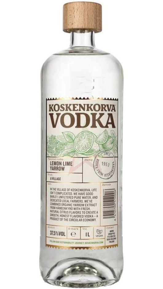 La Vodka Lemon Lime Yarrow di Koskenkorva è una creazione che unisce la purezza della tradizionale vodka finlandese a note fresche e aromatiche di limone, lime e achillea (yarrow). Prodotta nella rinomata regione di Koskenkorva, nota per la qualità delle sue materie prime e per l’acqua cristallina che caratterizza la distillazione, questa vodka si distingue per la sua limpidezza e morbidezza al palato.